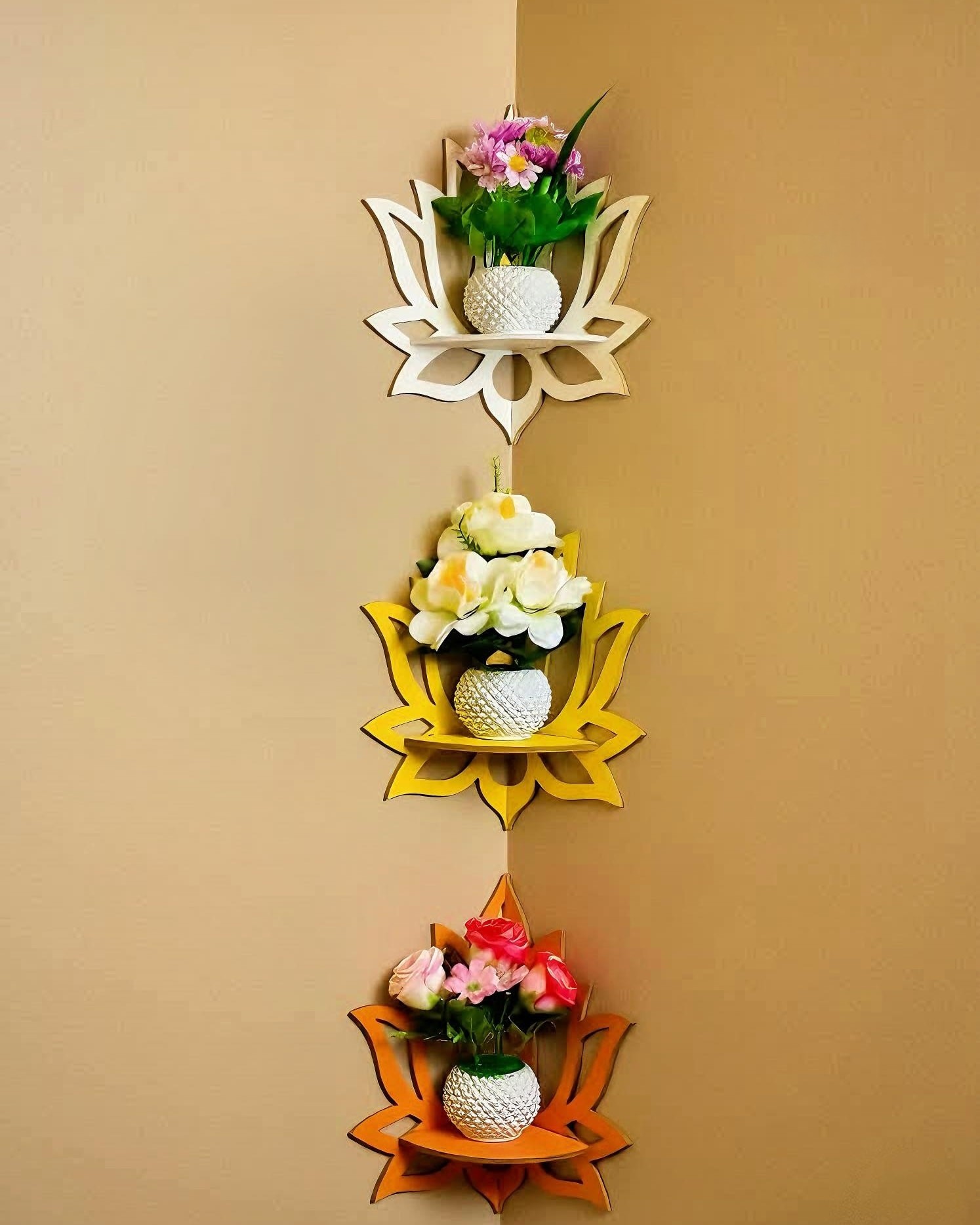 ৩টি পদ্মফুল কর্নার সেলফ ফুল সহ