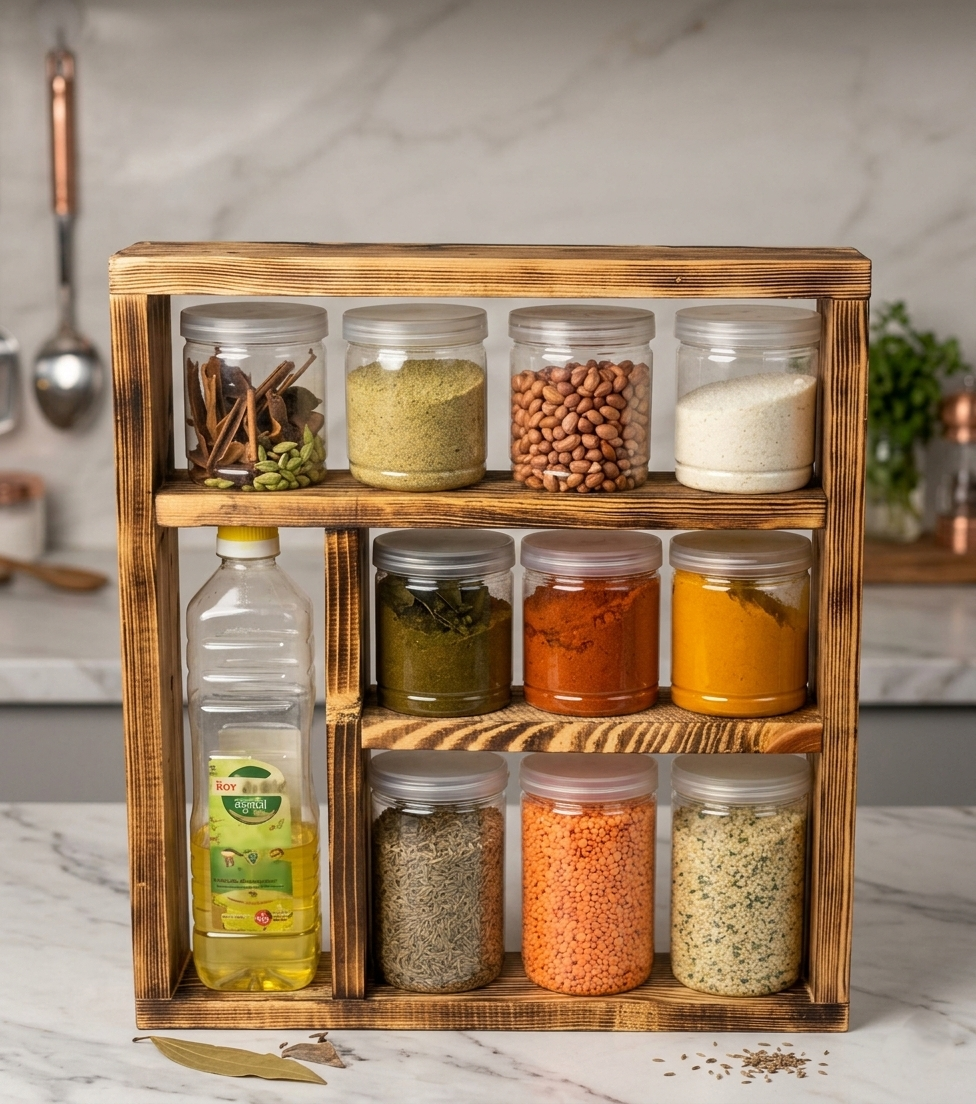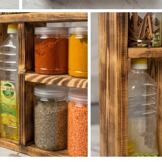 এই সুন্দর, সিম্পল এবং স্পেস সেভিং সেল্ফগুলো আপনার রান্নাঘরকে একদম গোছানো রাখবে। প্রতিটি জারে মশলা, চা, কফি বা অন্যান্য উপাদান সংরক্ষণ করতে পারবেন খুব সহজেই।